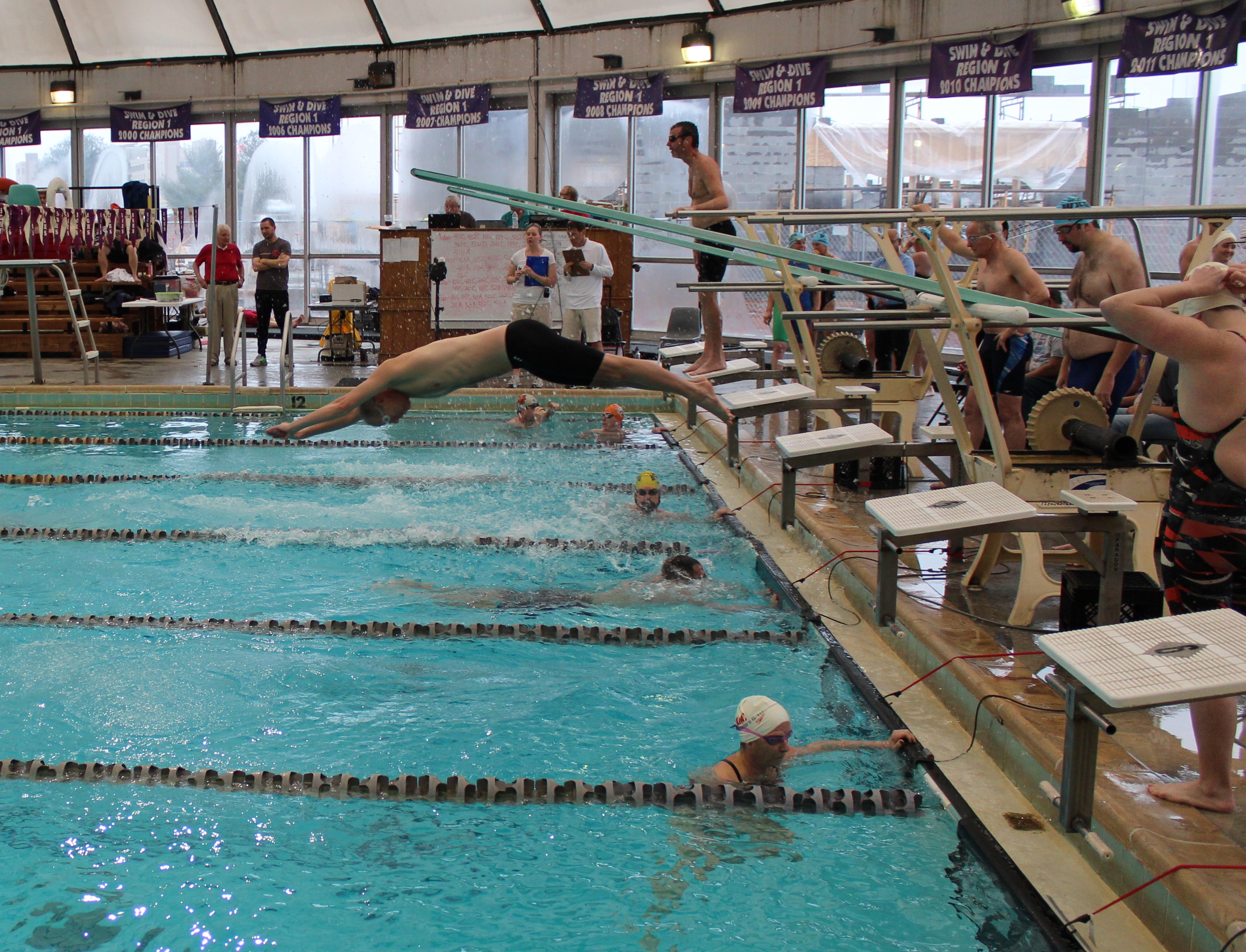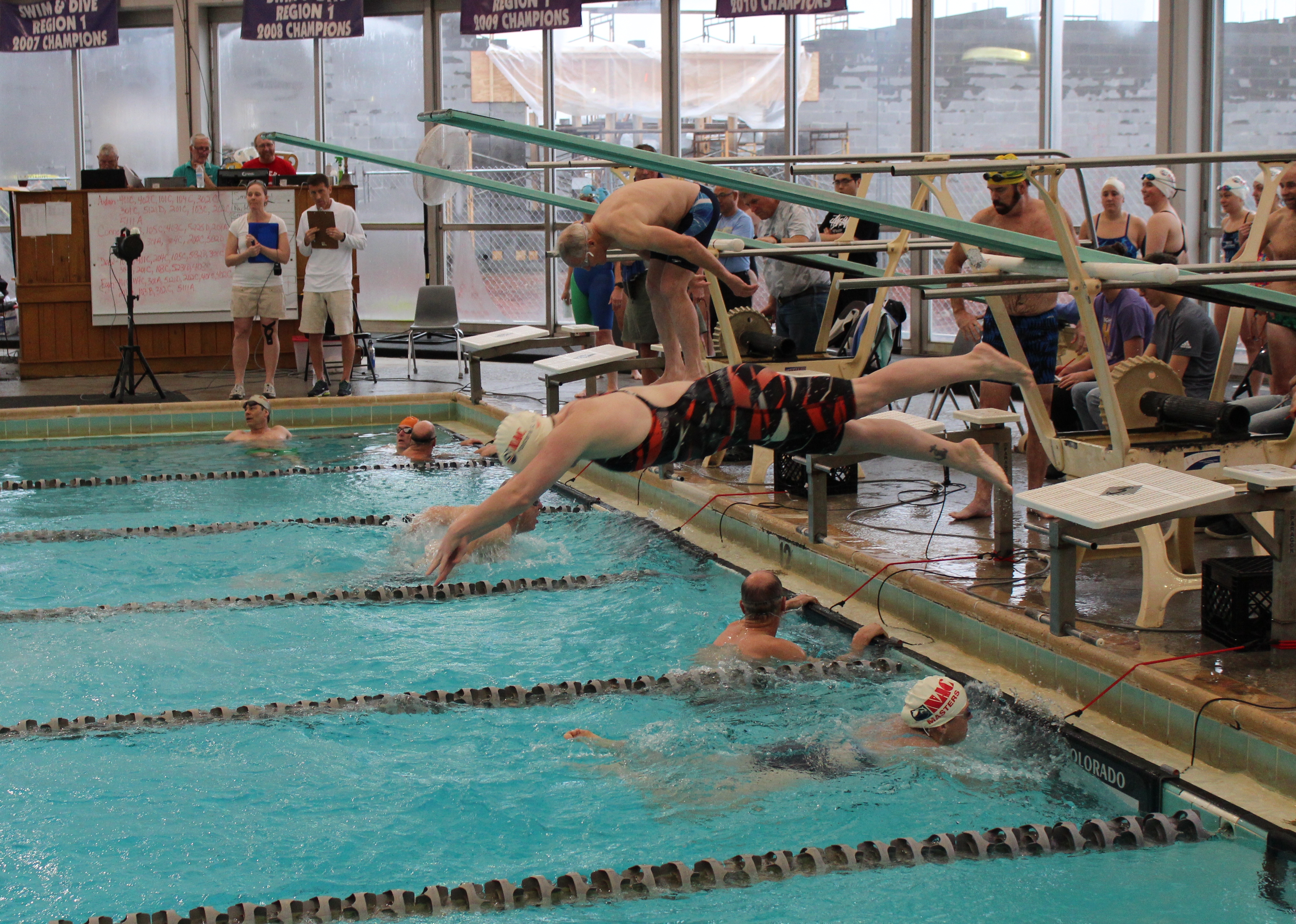 Heat sheets, race results, and finisher ribbons were well-organized and readily available. Officials kept the meet moving at a nice pace without rushing. Plenty of volunteers and experienced timers also contributed to the pace and level of comfort. Fifty-five masters swimmers competed in individual events and relays to accumulate individual and team points.