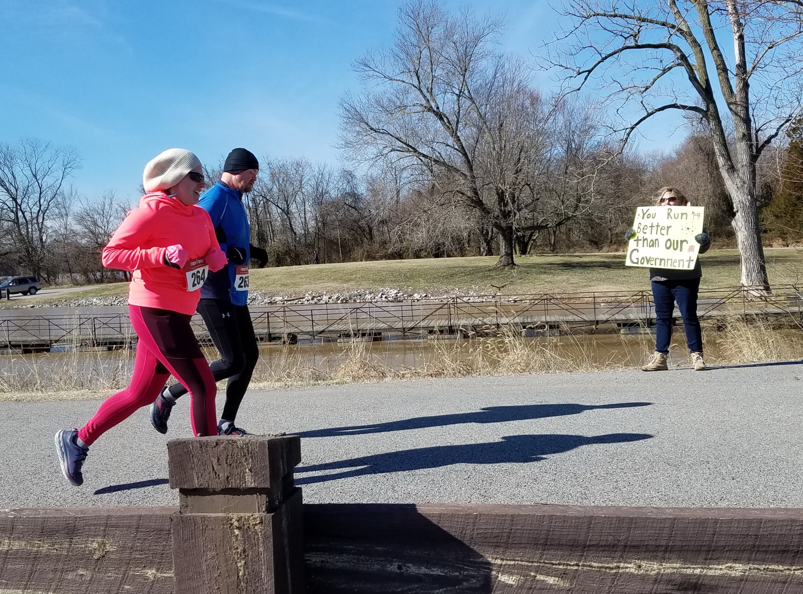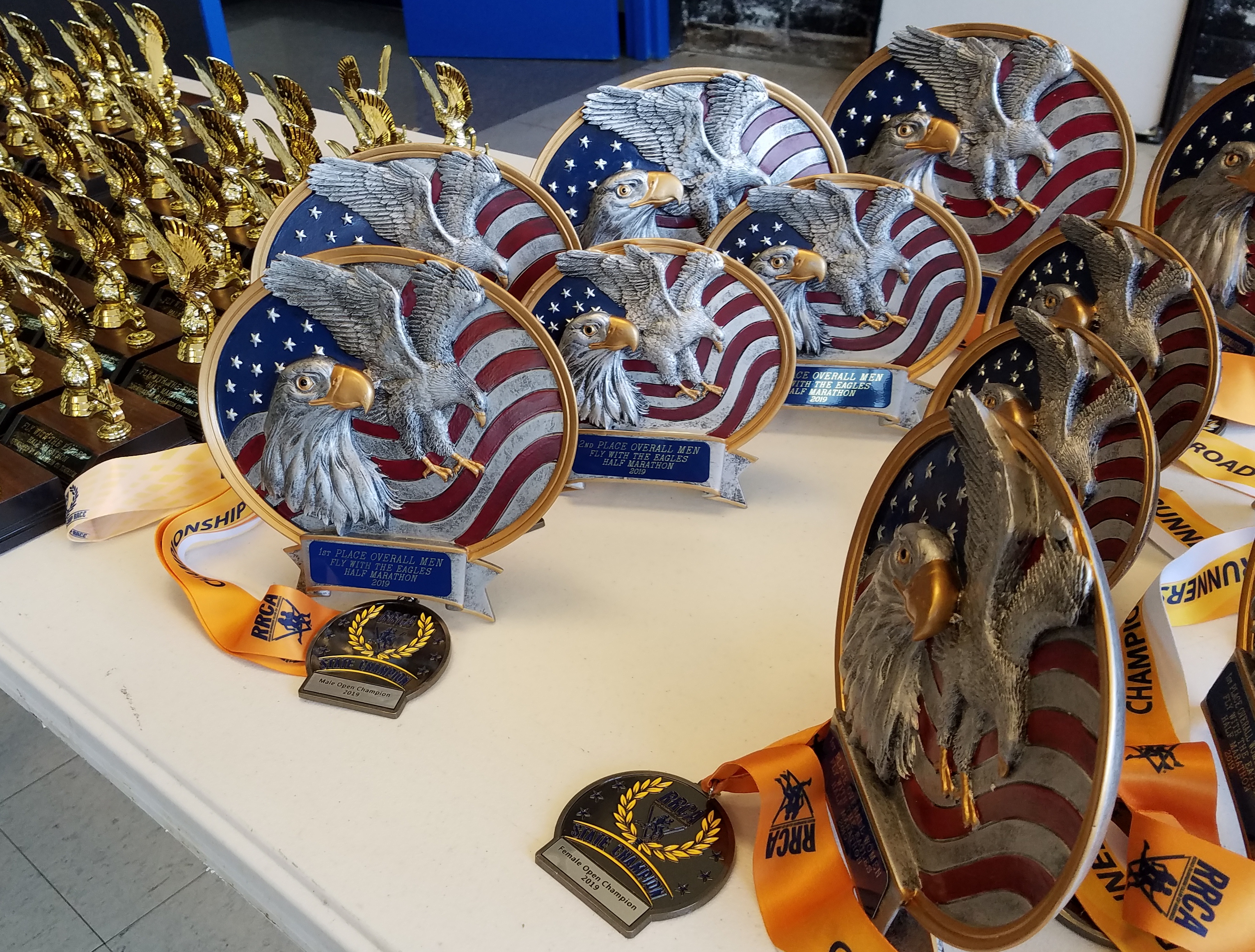 Only half crazy is a common tag line for apparel promoting the 13.1 mile road race. On Saturday February 9, 2019 there were 284 runners who pushed the needle of the crazy meter a bit past half. The air temperature was 19 with a 12 mile per hour wind from the northeast at the start of the Fly with the Eagles Half Marathon. The River to River Runners hosted the 13th running of the race which served as the 2019 RRCA Illinois Half Marathon Championship.