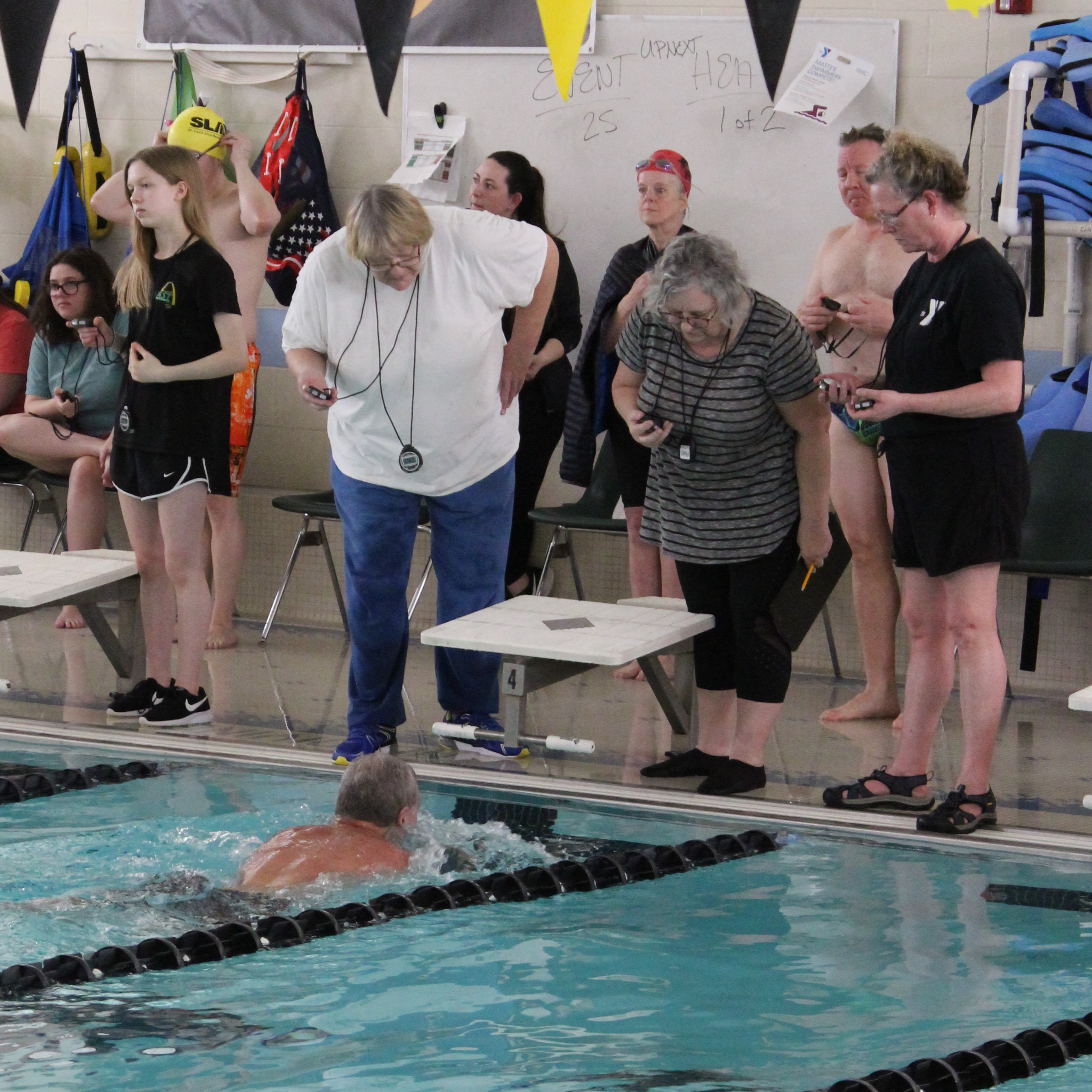 While that can be tiring, it’s good for getting the heart rate up and gauging fitness. The masters swim meet at Four Rivers YMCA in Washington, MO offered good competition and moved along at a fast pace. About 30 swimmers, ranging from 19 to 93 years of age, participated in the FRAY swim meet on March 23. Meet officials, YMCA staff and volunteers did a great job of organizing the event and helping participants.
