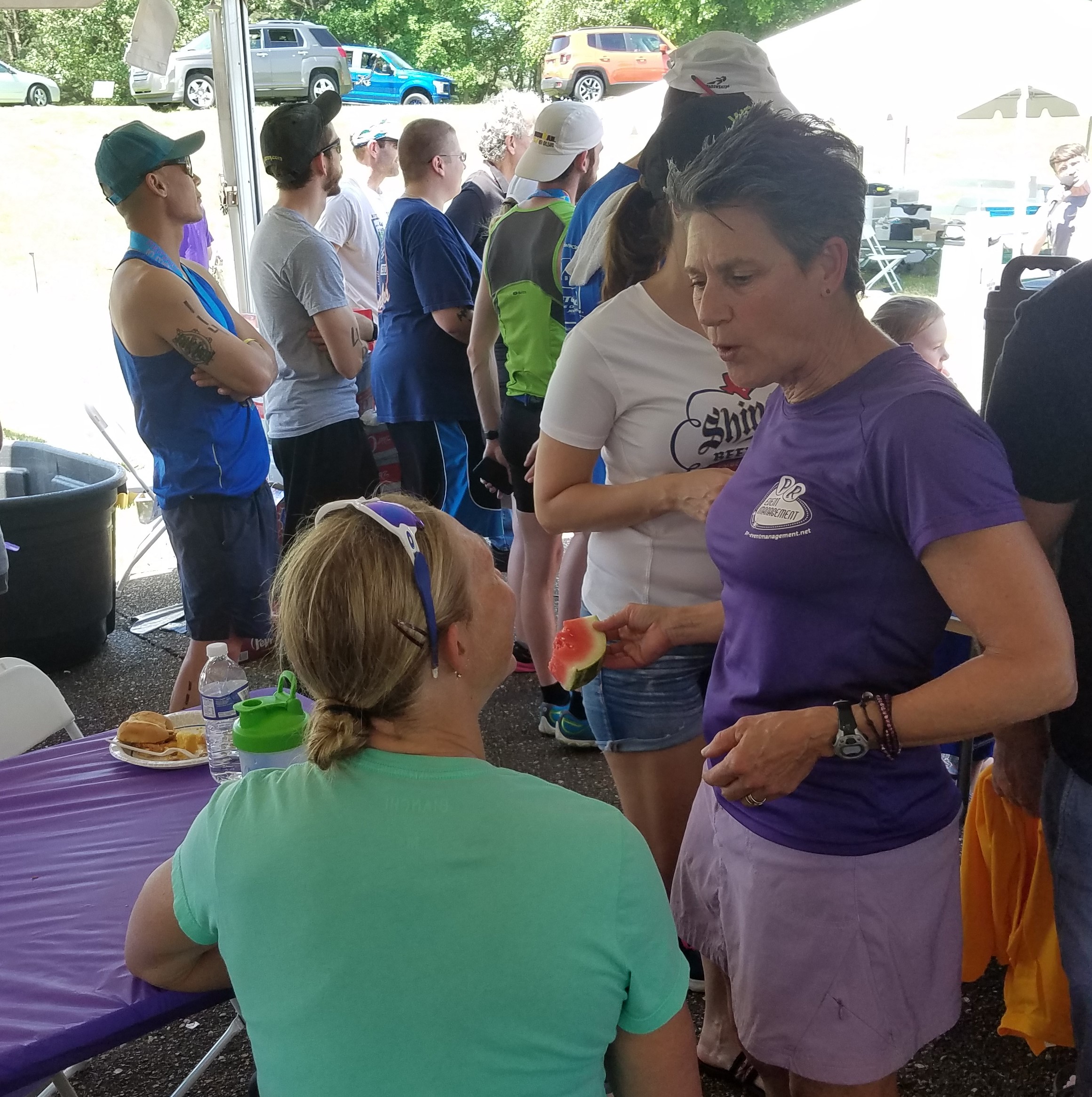 Pam was my printing sales rep when I lived in Memphis over twenty years ago. Plus, we swam together at the university pool. She was active in the triathlon community and hooked me up with a cyclist and runner to do my first-ever relay at a Memphis in May triathlon several years ago. When I signed up for the race two years ago, I was surprised to see her as the principal for the race management company. It was good to chat with her and see how hard she works to make her events successful. I look forward to participating in more of her events in the future.