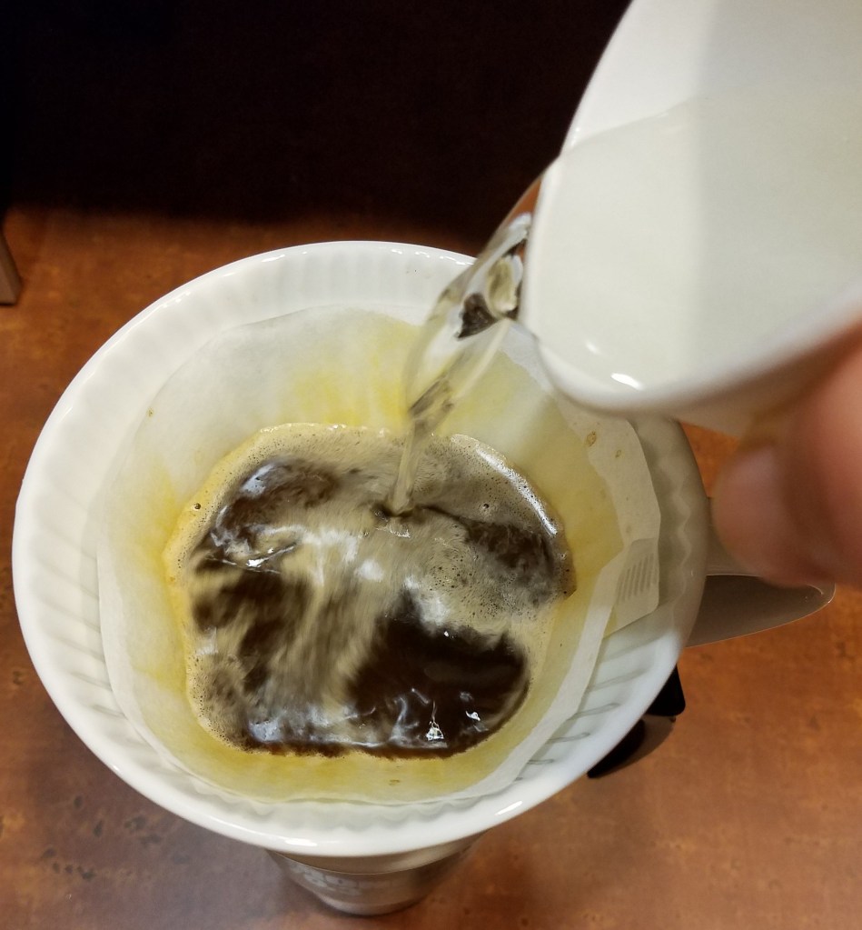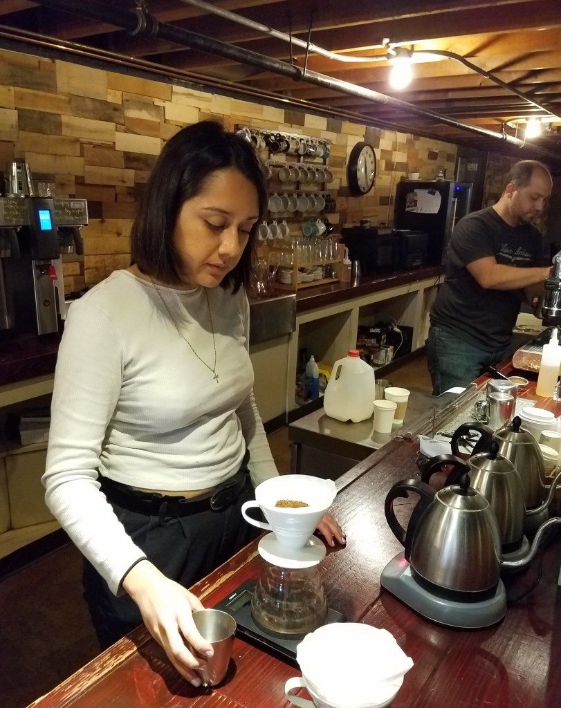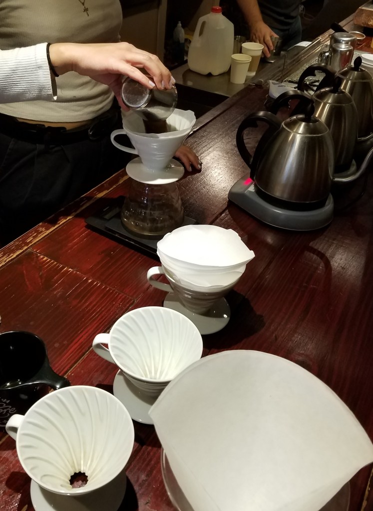 Without thinking, “Vanilla Nut???” fell out of my mouth. The clerk was very polite and told me it was a flavored bean rather than added syrup. She also explained that Black and Gold was their own blend of dark and lighter roasted beans. With that being the two options, I ordered a Black and Gold pour over and the grinding, weighing and timing began. There was plenty of time for me to check out the shop, which really is quite nice. Asking about the beans, I found out The Grind partners with another roaster.
