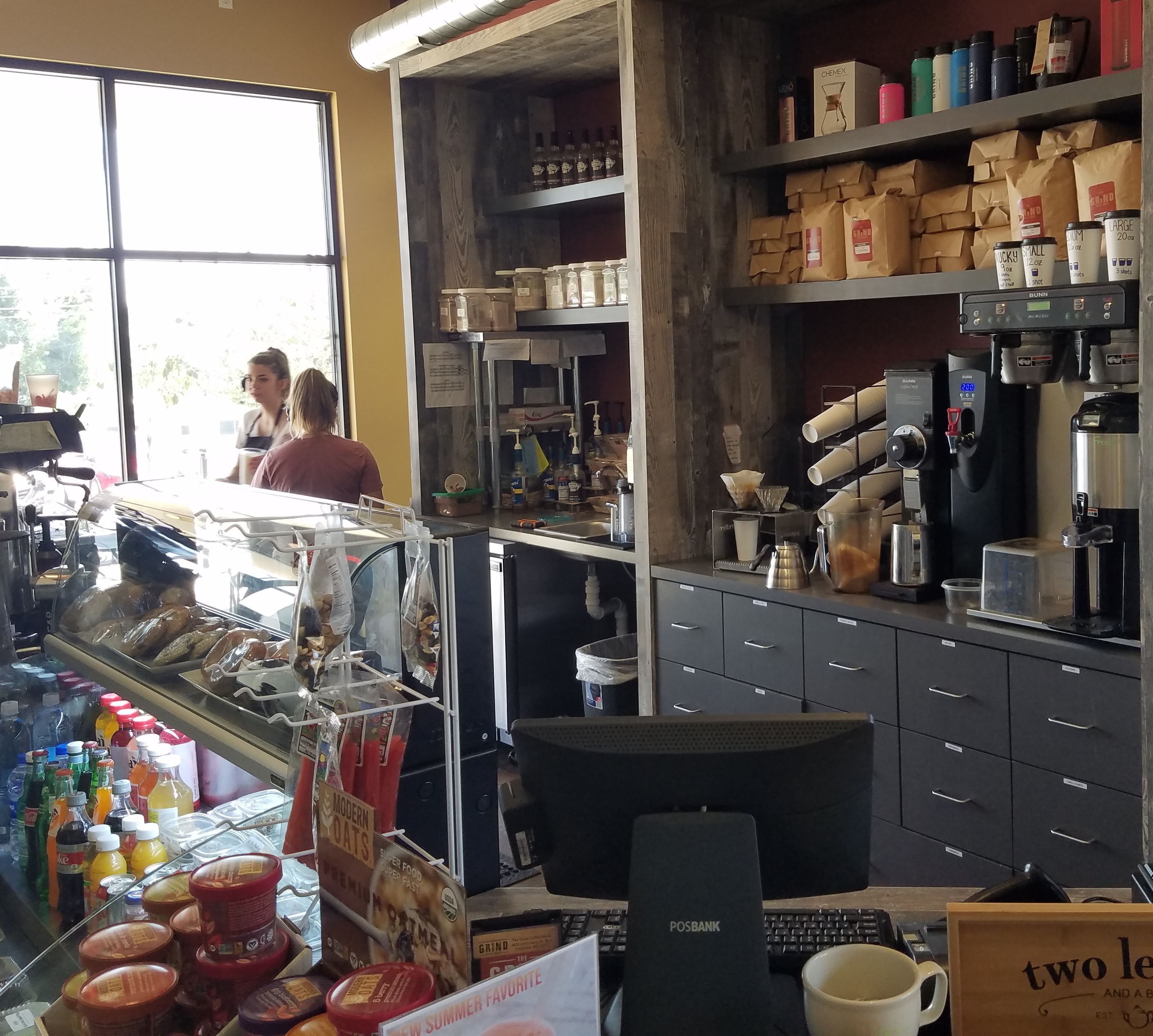 The Rangeline location has a familiar, suburban chain vibe, without blatant copying anything specific. It’s clean, spacious and offers a variety of seating options. There is an abundance of food options from local vendors as well as standard coffee-shop packaged fare. All nice. I came for coffee. A good, fresh cup of coffee. The large urns of brewed coffee didn’t appeal to me. When I asked about a pour over, the reply was a bit puzzling. “We have Vanilla Nut and our Black and Gold blend.” Several single-origin coffees in ‘the Grind’ packaging were displayed for retail, yet none were on the list du jour for a fresh brew.